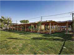 木造、平屋建。集成材を使用し、